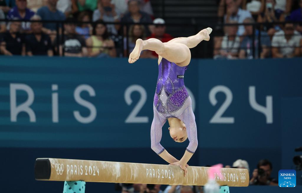 Alice D'Amato of Italy competes during the women's balance beam final of artistic gymnastics at the Paris 2024 Olympic Games in Paris, France, Aug. 5, 2024. (Xinhua/Lai Xiangdong)