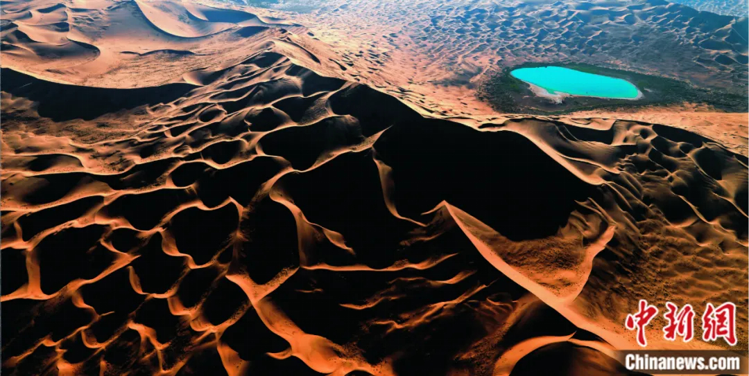 Photo shows an aerial view of Badain Jaran Desert in Alxa Right Banner, Alxa League, north China's Inner Mongolia Autonomous Region. (Photo courtesy of the publicity department of the Communist Party of China Alxa Right Banner committee)
