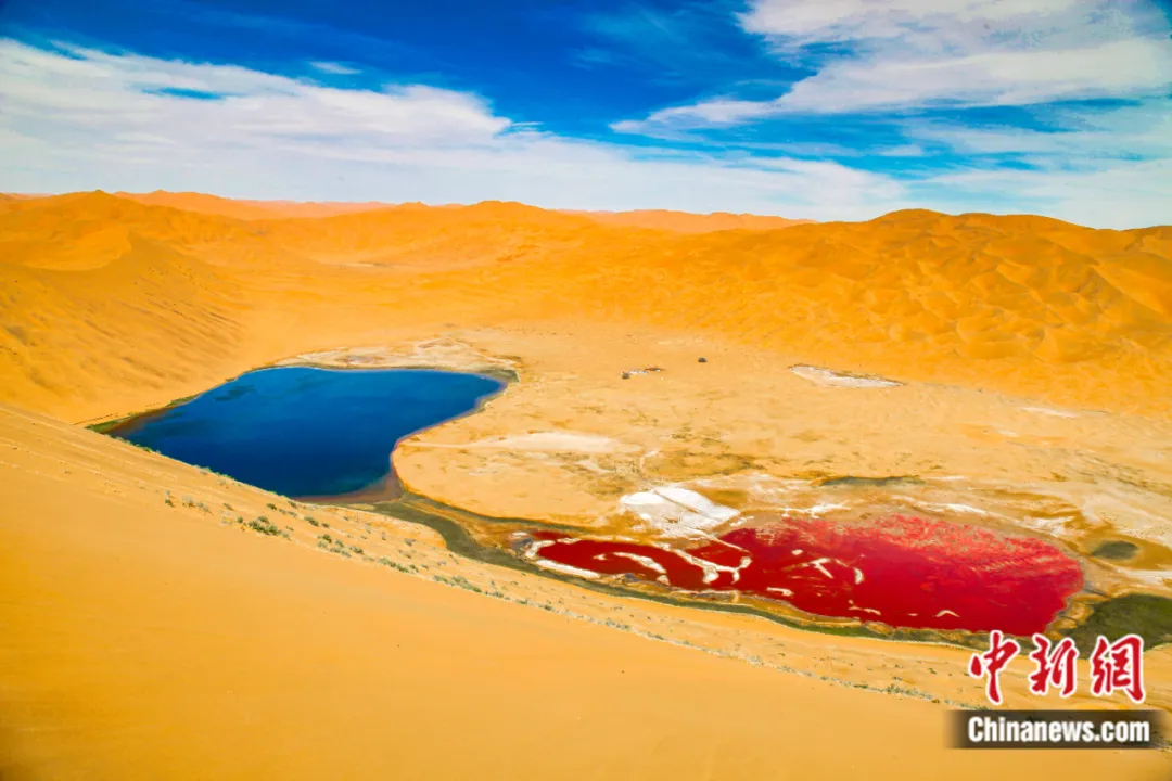 Photo shows Nuoritu lake in Badain Jaran Desert, Alxa Right Banner, Alxa League, north China's Inner Mongolia Autonomous Region. (Photo courtesy of the publicity department of the Communist Party of China Alxa Right Banner committee)
