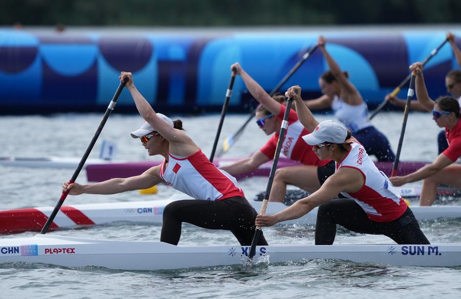 PARIS, Aug. 9 (Xinhua) -- China's Xu Shixiao and Sun Mengya defended their title in the women's canoe double 500m final at the Paris Olympics here on Friday.