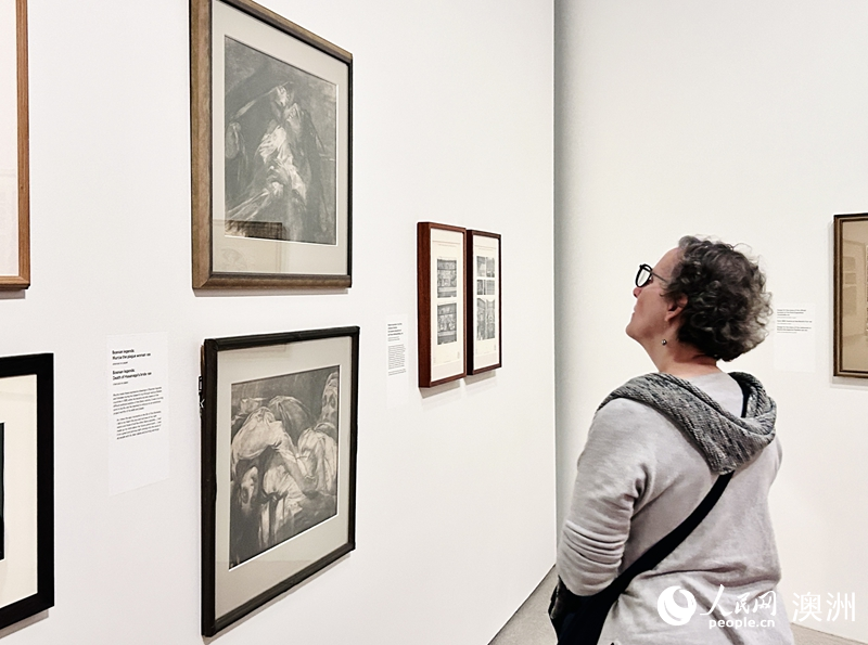 A visitor purchases themed merchandise after viewing the exhibition at the Art Gallery of New South Wales in Australia. (Photo/Bai Yuchen)