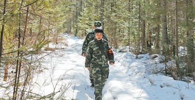 Forest rangers from China Longjiang Forest Industry Group Co., Ltd. based in northeast China’s Heilongjiang Province, patrol a forest area. (File photo)