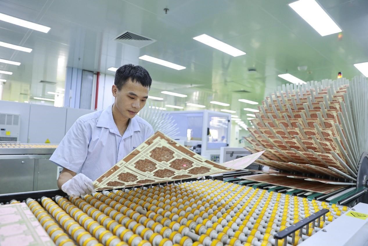 Photo shows a worker busy producing printed circuit boards (PCBs) to be exported overseas in a workshop of a company based in Jiujiang, east China's Jiangxi province. (People's Daily Online/Wei Dongsheng)