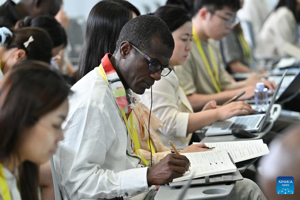 Journalists attend a press briefing of the 2024 Summit of the Forum on China-Africa Cooperation (FOCAC) in Beijing, capital of China, Sept. 2, 2024. (Xinhua/Li Xin)
