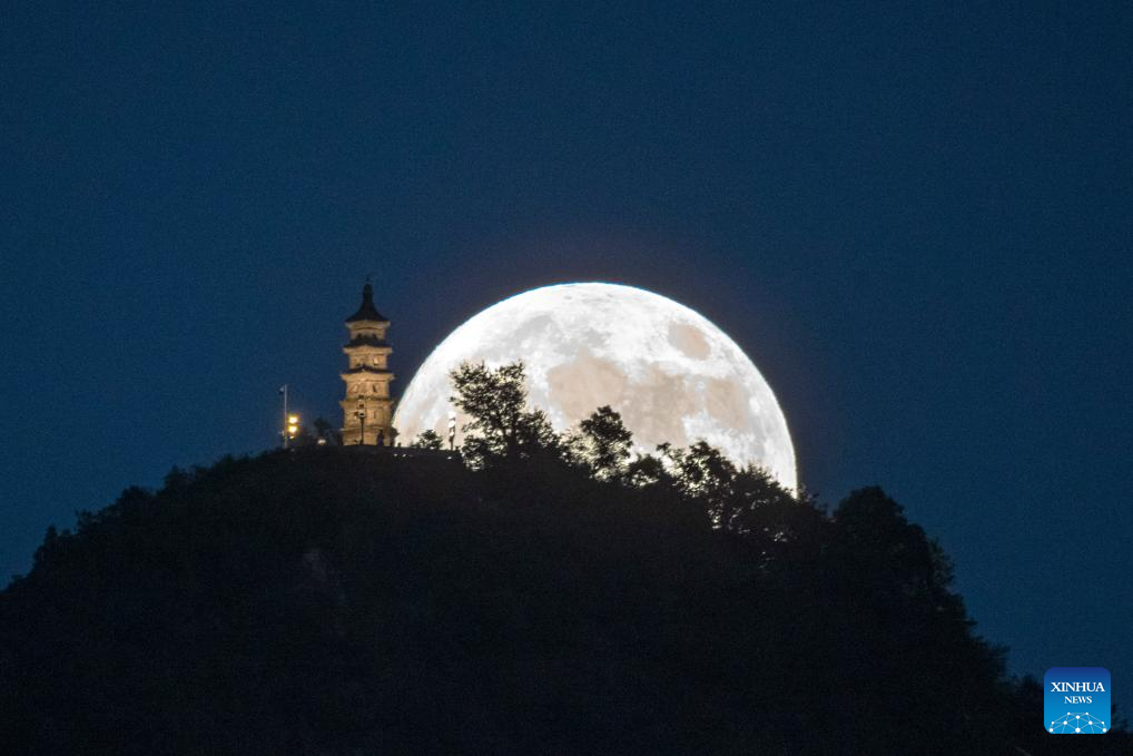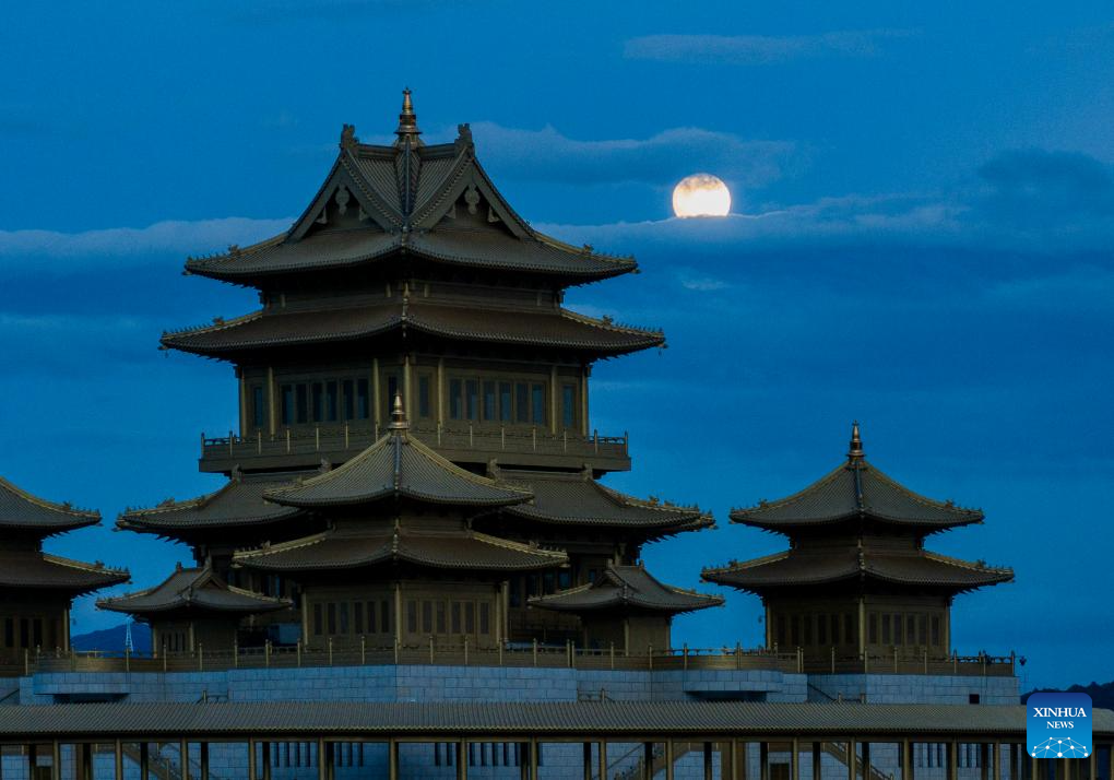 The moon rises above Huangyan District of Taizhou, east China's Zhejiang Province, Sept. 17, 2024. The Mid-Autumn Festival in China, which is celebrated annually on the 15th day of the eighth month in the Chinese lunar calendar, falls on Sept. 17 this year. As one of China's most important traditional holidays, it is a joyous time when families come together, appreciate the full moon and share moon cakes, a traditional pastry, to mark the harvest season. (Photo by Pan Kanjun/Xinhua)
