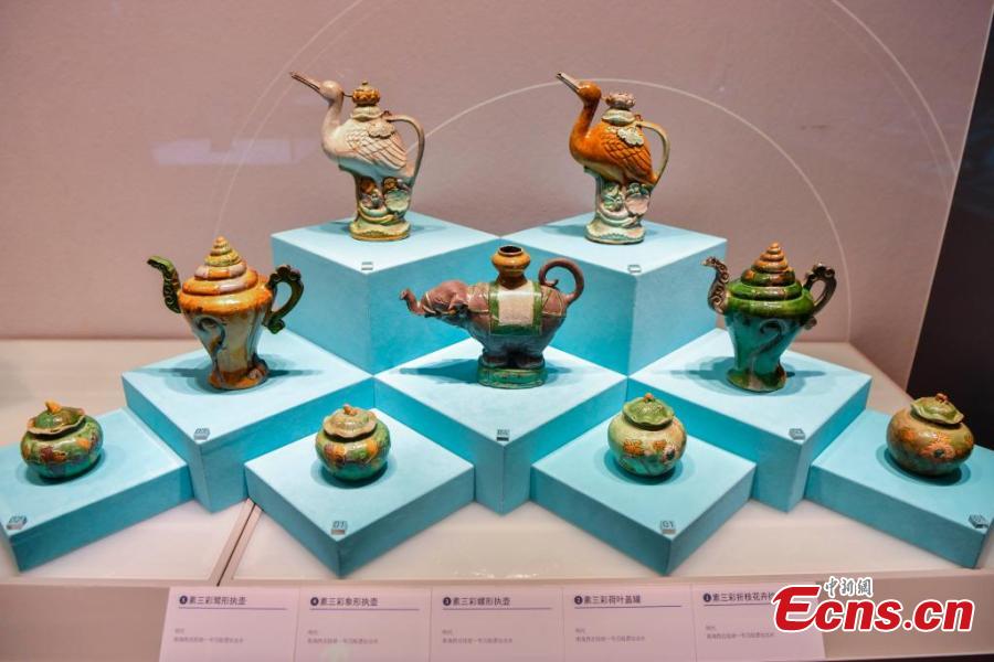 Relics retrieved from two ancient shipwrecks discovered in the South China Sea are on show at the China (Hainan) Museum of the South China Sea in Qionghai, south China's Hainan Province, Sept. 27, 2024. (Photo: China News Service/Luo Yunfei)