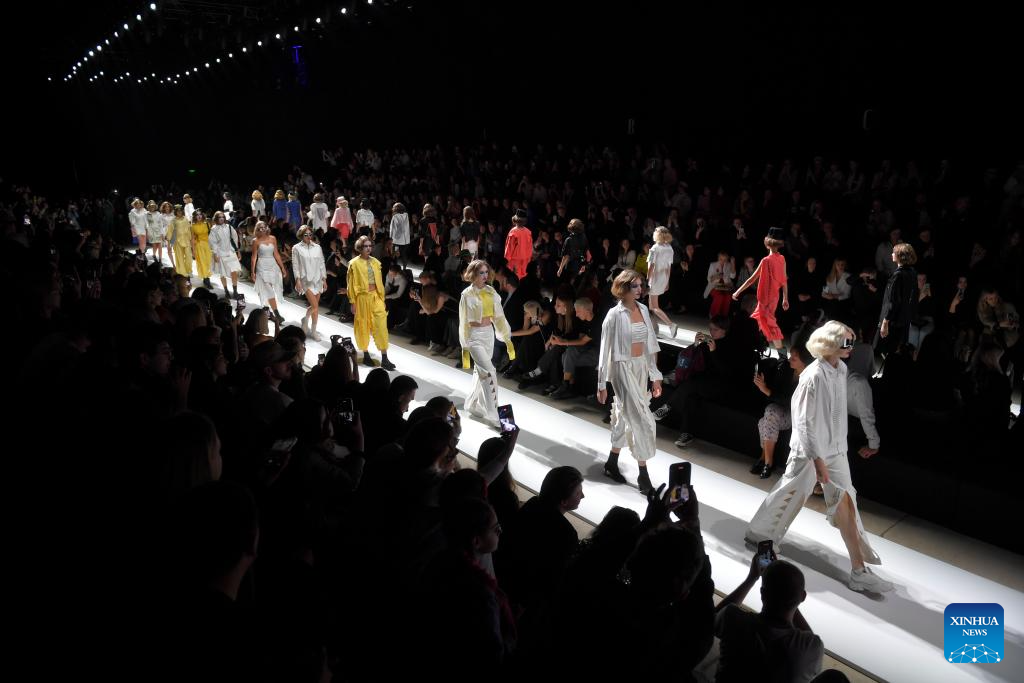 Models present creations during the Moscow Fashion Week in Moscow, Russia, on Oct. 4, 2024. The Moscow Fashion Week kicked off on Friday and will last until Oct. 9. (Photo by Alexander Zemlianichenko Jr/Xinhua)