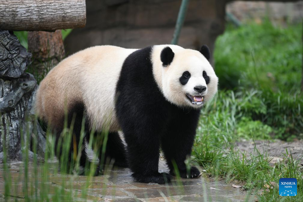 Giant panda Sheng Yi is pictured at the Shenshuping giant panda base of Wolong National Nature Reserve in southwest China's Sichuan Province, April 16, 2024. Sheng Yi, female, was born at Zoo Negara, the National Zoo of Malaysia, on May 31, 2021. (Xinhua/Xu Bingjie)