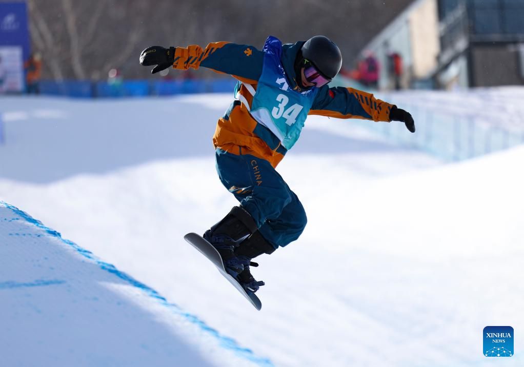 Gao Hongbo of China competes during the men's qualification of FIS Snowboard Halfpipe World Cup 2024 in Zhangjiakou, north China's Hebei Province, Dec. 6, 2024. (Xinhua/Luo Yuan)