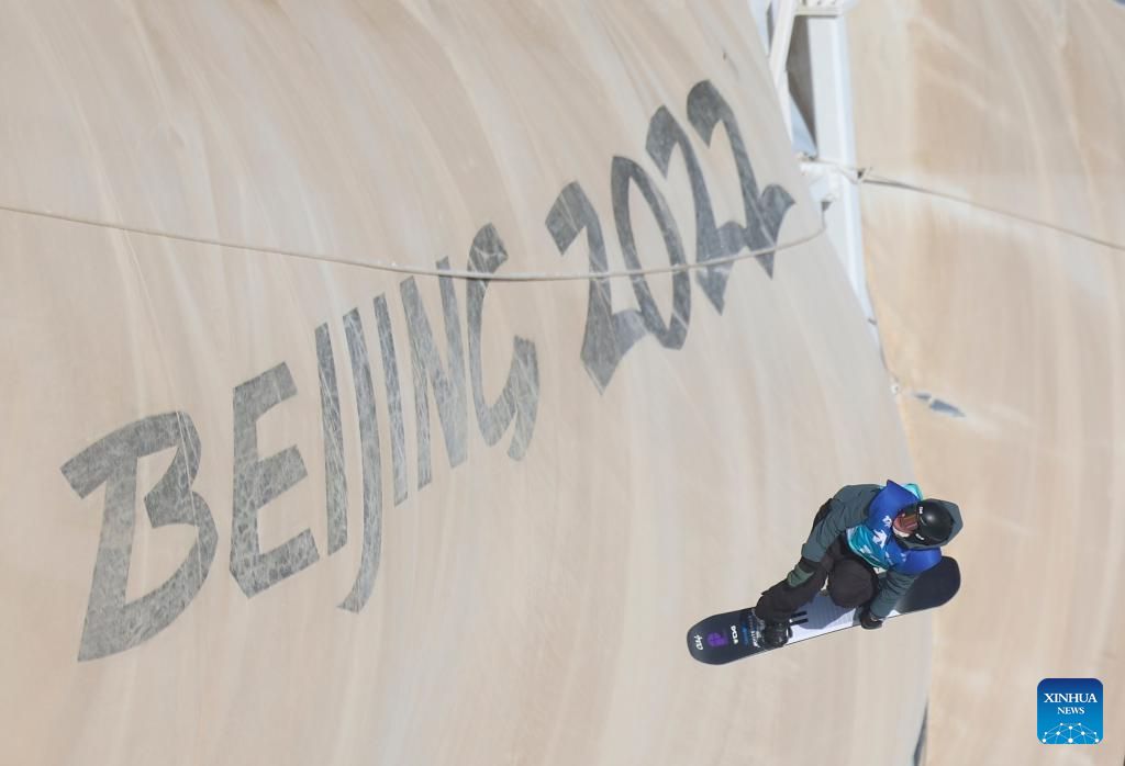 Campbell Melville Ives of New Zealand competes during the men's qualification of FIS Snowboard Halfpipe World Cup 2024 in Zhangjiakou, north China's Hebei Province, Dec. 6, 2024. (Xinhua/Luo Yuan)