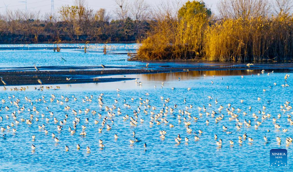 Birds are pictured at a wetland park in Tongchuan District of Dazhou City, southwest China's Sichuan Province, Dec. 15, 2024. (Photo by Zeng Meng/Xinhua)