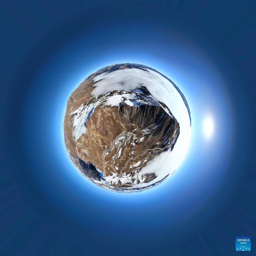 An aerial panoramic photo taken on Dec. 25, 2024 shows the cloud-shrouded Jiajin Mountain in Xiaojin County, Aba Tibetan and Qiang Autonomous Prefecture, southwest China's Sichuan Province. (Xinhua/Wang Xi)