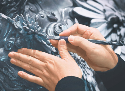 Before carving, one must locate the "flowers" in the stone. "It takes a seasoned artisan to skillfully reveal the flowers through touch and feel, all the while maintaining the integrity of the 'flower pattern,'" Chen said.