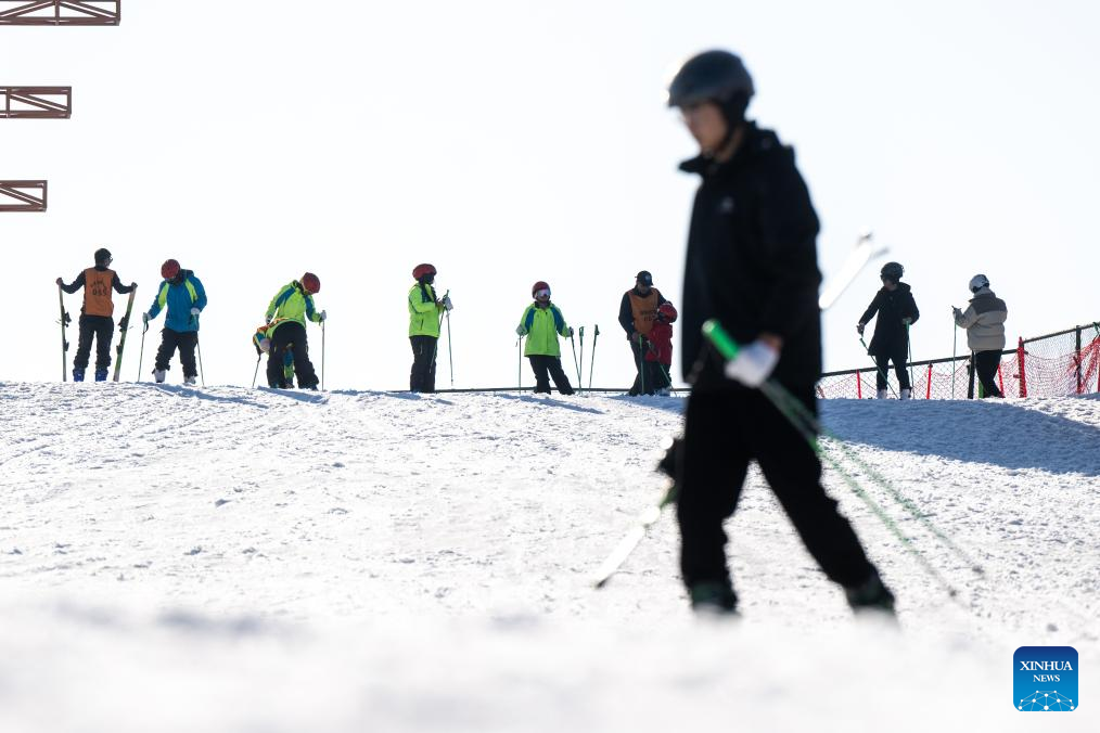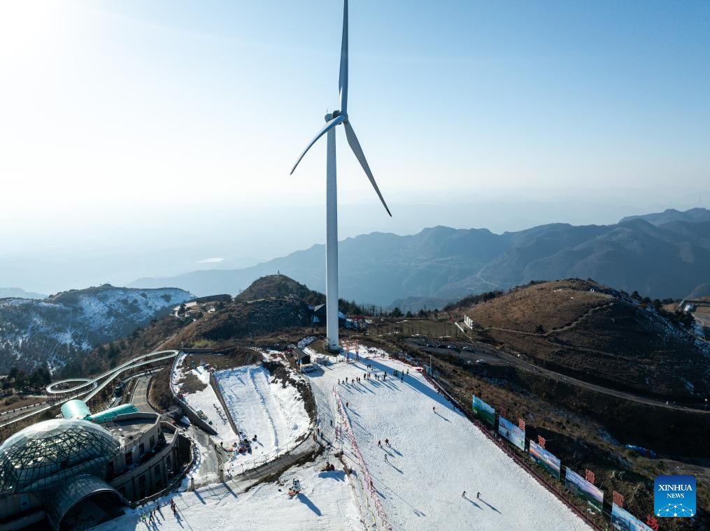 Tourists ski at Bailihuang Ski Resort in Yichang City, central China's Hubei Province, Jan. 5, 2025. In recent years, Yichang has explored its ice and snow tourism resources, attracting numerous tourists. (Xinhua/Xiao Yijiu)