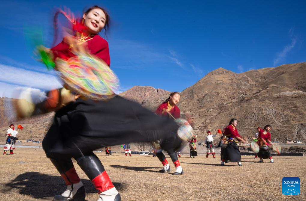 People perform Reba Dance in Chido Township, Dengqen County, Qamdo, southwest China's Xizang Autonomous Region, Jan. 5, 2025. (Xinhua/Tenzin Nyida)