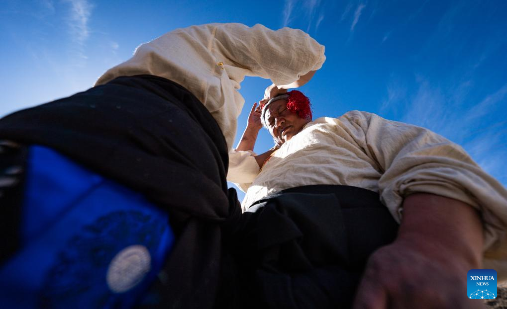 Ani puts on dance attire in Chido Township, Dengqen County, Qamdo, southwest China's Xizang Autonomous Region, Jan. 5, 2025. (Xinhua/Tenzin Nyida)