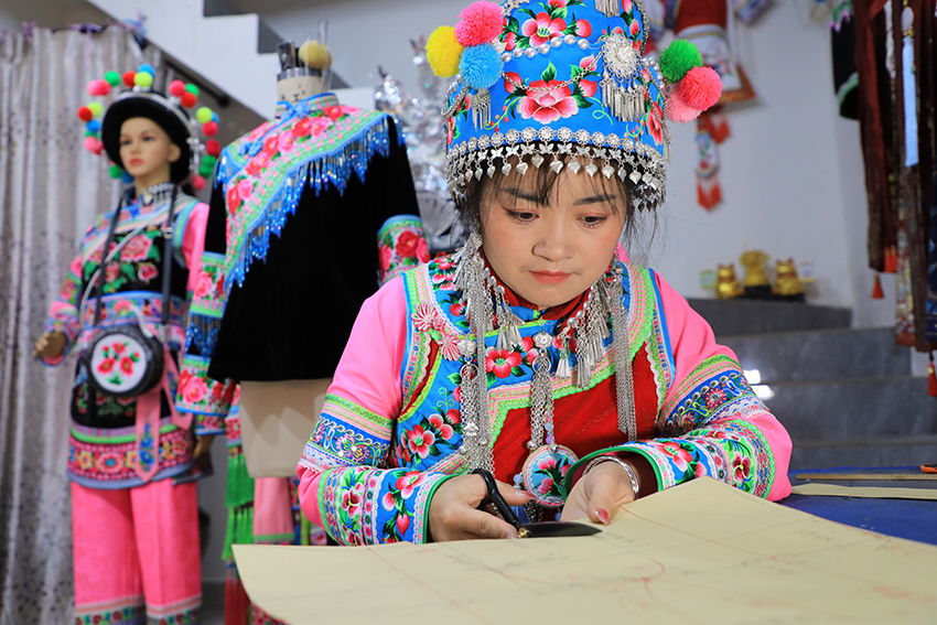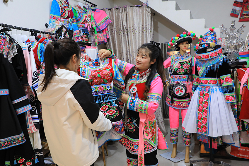 Li Jie, a skilled embroiderer from southwest China's Yunnan Province, infuses intangible cultural heritage items such as traditional embroidery and silver ornaments with modern fashion elements, creating ethnic costumes that captivate consumers and breathe new life into traditional clothing.
