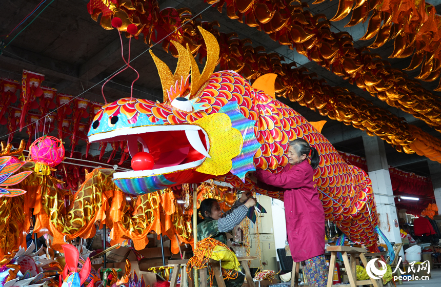 Dragon lanterns produced in E China's Jiangxi favored by clients worldwide