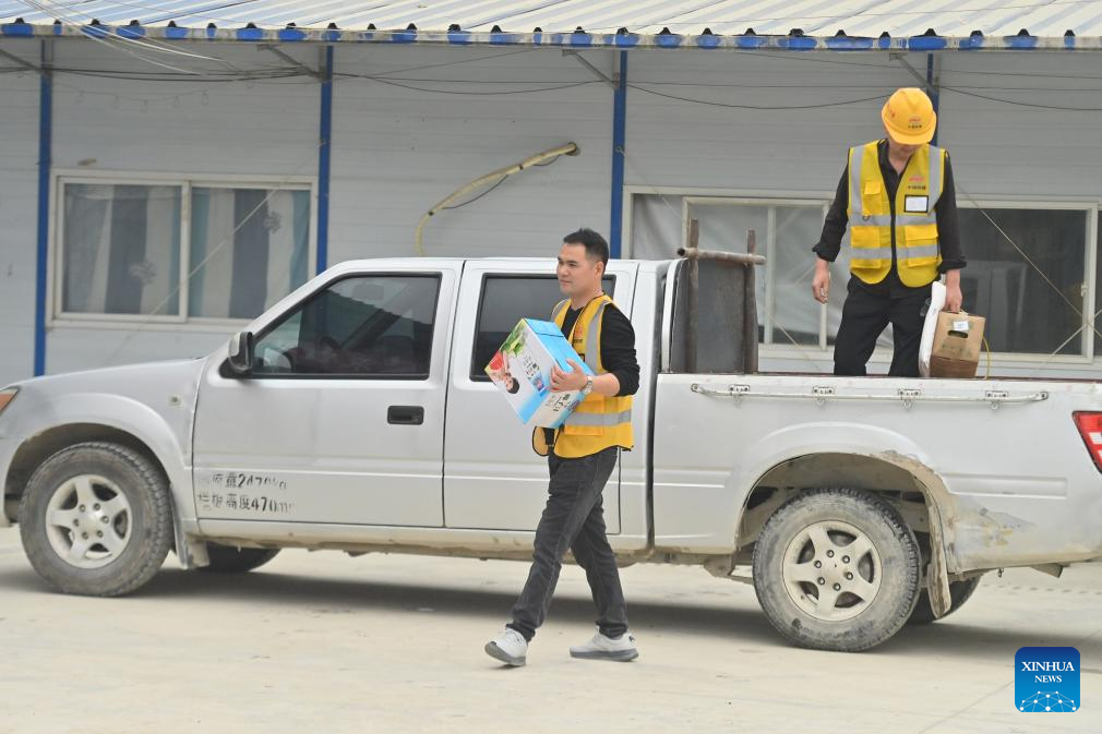 Workers carry goods for the Spring Festival at the construction site of an expressway linking Yufeng and Yizhou of south China's Guangxi Zhuang Autonomous Region in Liuzhou of Guangxi, Jan. 23, 2025.