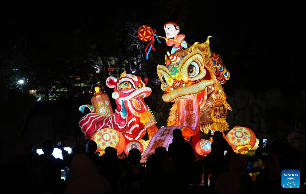 People enjoy lanterns at Baotuquan Park in Jinan, capital of east China's Shandong Province, Jan. 30, 2025. People enjoy various activities to celebrate the Chinese New Year which falls on Jan. 29 this year. (Xinhua/Xu Suhui)