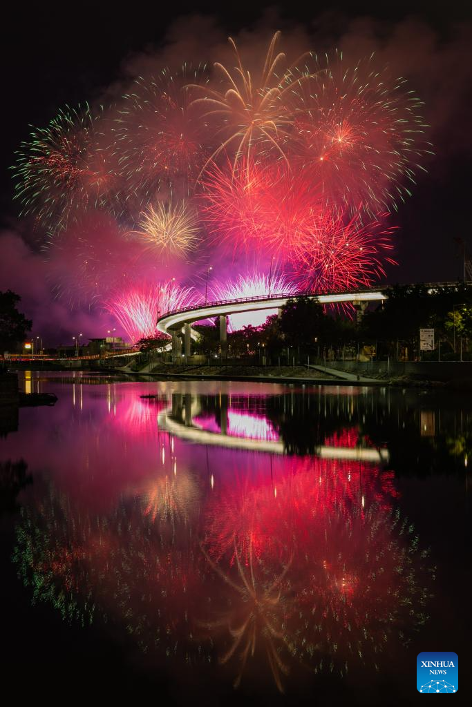 Fireworks in celebration of the Spring Festival illuminate the sky in Macao, south China, Feb. 4, 2025. (Xinhua/Cheong Kam Ka)