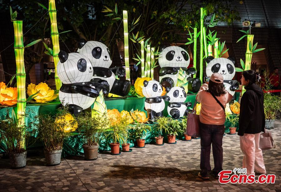 Dazzling lanterns are displayed at Hong Kong Cultural Center ahead of the Lantern Festival in the Hong Kong Special Administrative Region, Feb. 9, 2025. (China News Service/Hou Yu)