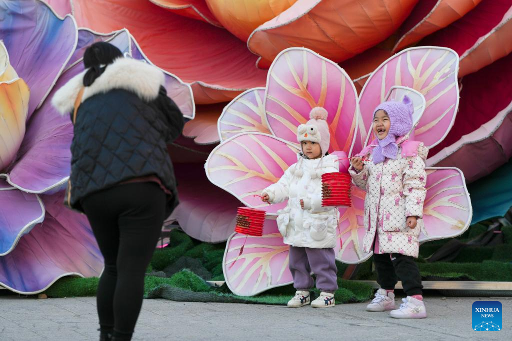People visit a lantern fair at Beijing Garden Expo Park in Beijing, capital of China, Feb. 10, 2025. Two major lantern fairs are held in Beijing to mark the Lantern Festival, which falls on Wednesday. (Xinhua/Ju Huanzong)