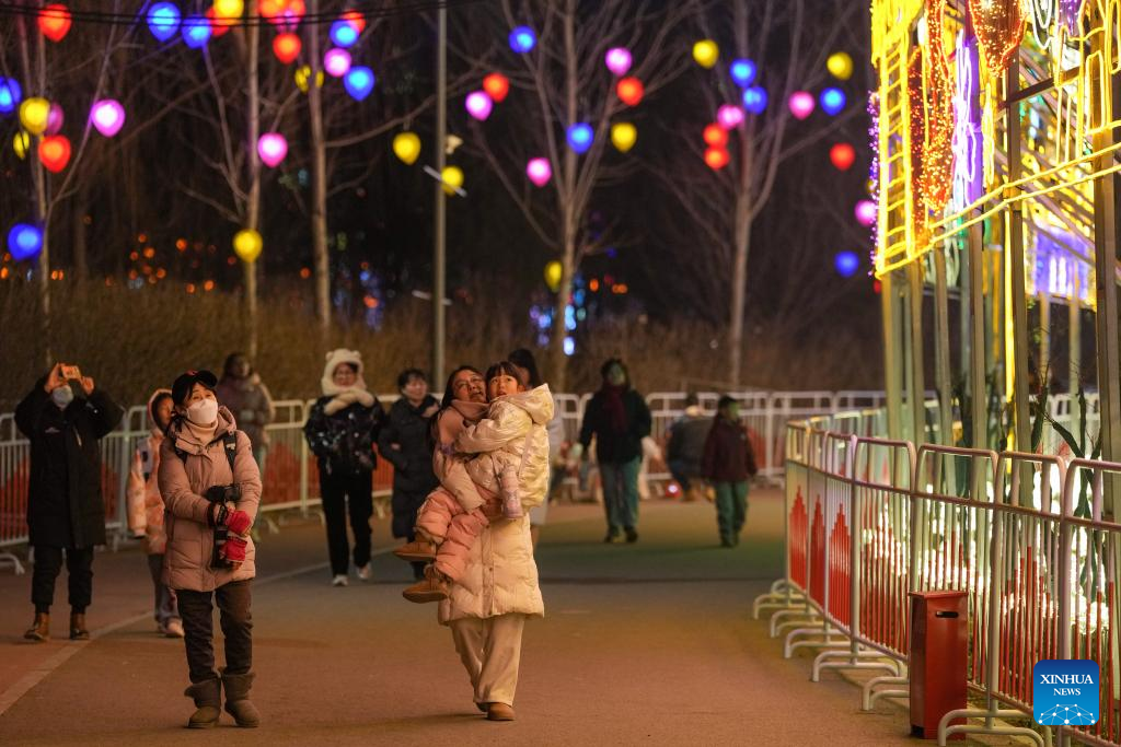 People visit a lantern fair at Beijing Wenyuhe Park in Beijing, capital of China, Feb. 11, 2025. Two major lantern fairs are held in Beijing to mark the Lantern Festival, which falls on Wednesday. (Xinhua/Ju Huanzong)
