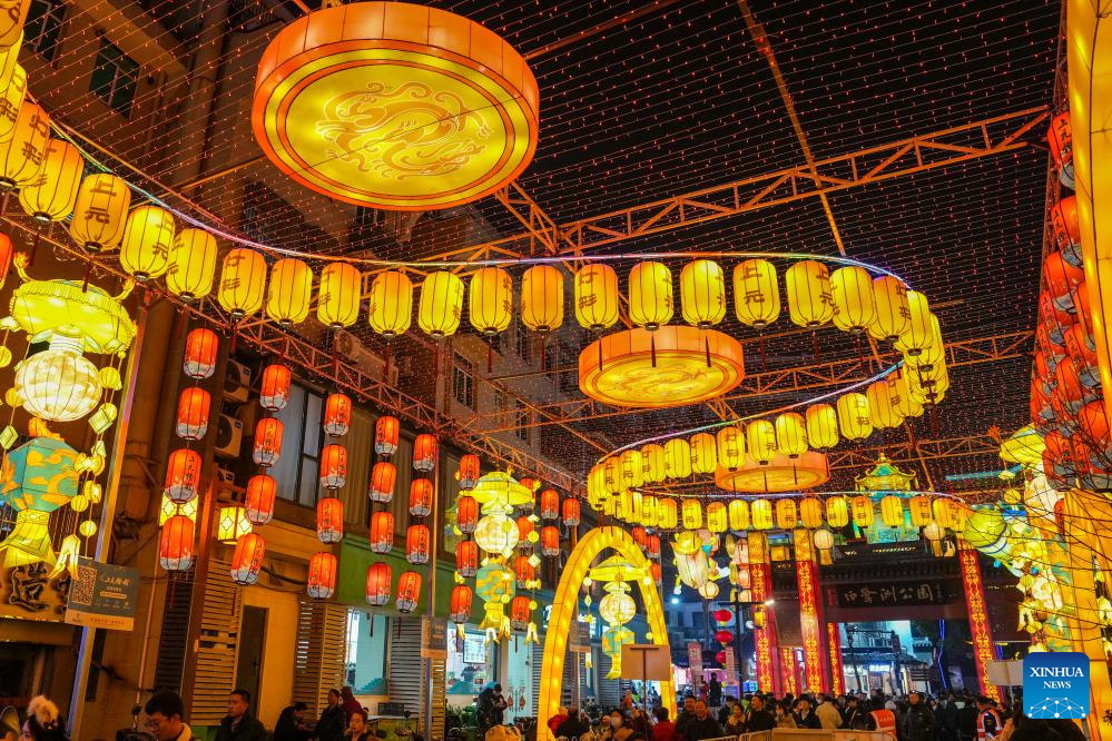 People watch dragon dance parade in Liuzhou City, south China's Guangxi Zhuang Autonomous Region, Feb. 12, 2025. Various activities were held across China to celebrate the Lantern Festival, which falls on the fifteenth day of the first month of the Chinese lunar calendar. (Photo by Li Hanchi/Xinhua)