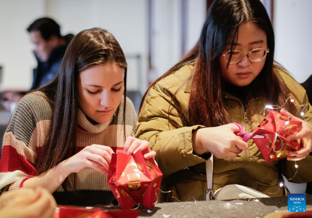 People attend a lantern-making workshop during a community event celebrating the Lantern Festival in Vancouver, British Columbia, Canada, Feb. 12, 2025. (Photo by Liang Sen/Xinhua)