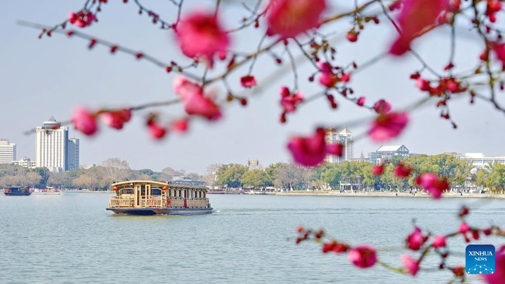 A boat sails on the Nanhu Lake in Jiaxing, east China's Zhejiang Province, Feb. 24, 2025. (Photo by Jin Peng/Xinhua)
