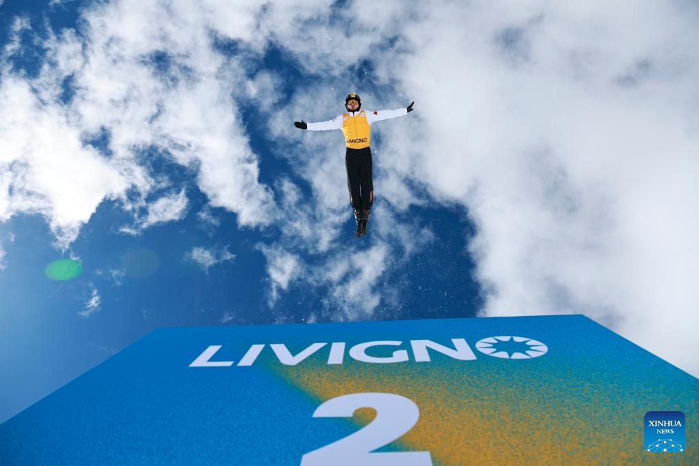 China's Li Tianma attends a practice session before the 2024-2025 FIS Freestyle Ski World Cup at the Livigno Aerials & Moguls Park, in Livigno, Italy, March 11, 2025. (Xinhua/Li Jing)