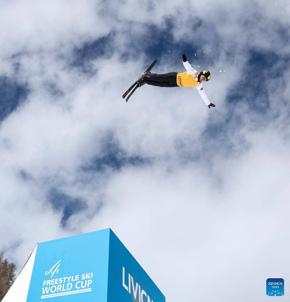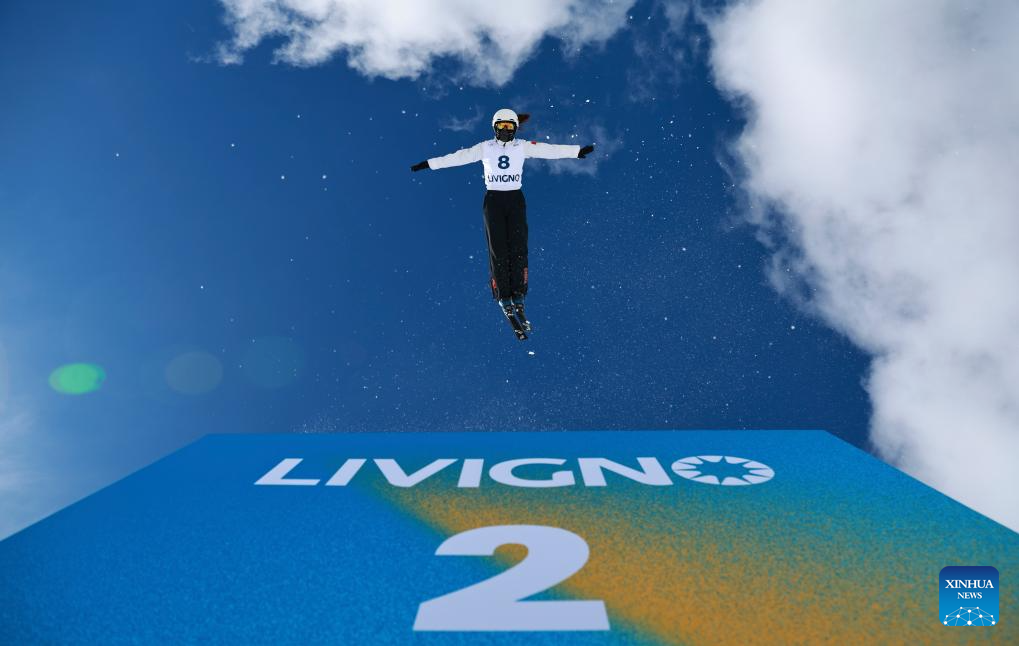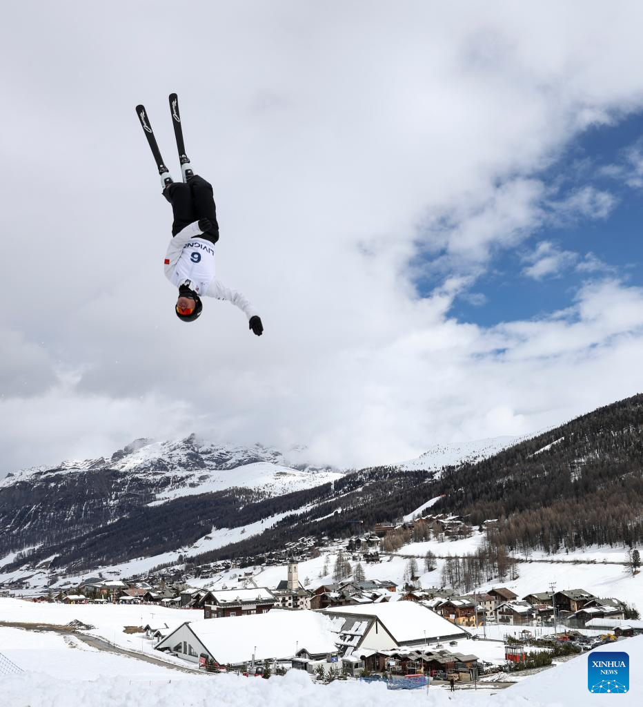 China's Qi Guangpu attends a practice session before the 2024-2025 FIS Freestyle Ski World Cup at the Livigno Aerials & Moguls Park, in Livigno, Italy, March 11, 2025. (Xinhua/Li Jing)