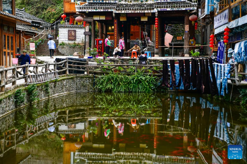 Villagers walk outside the Zhaoxing Dong Village in Liping County of Qiandongnan Miao and Dong Autonomous Prefecture, southwest China's Guizhou Province, March 17, 2025. Located in Liping County of Qiandongnan Miao and Dong Autonomous Prefecture, Zhaoxing Dong Village is home to over a thousand households of the Dong ethnic group. The traditional architectural style and rich cultural heritage of the Dong ethnic group are well-preserved.