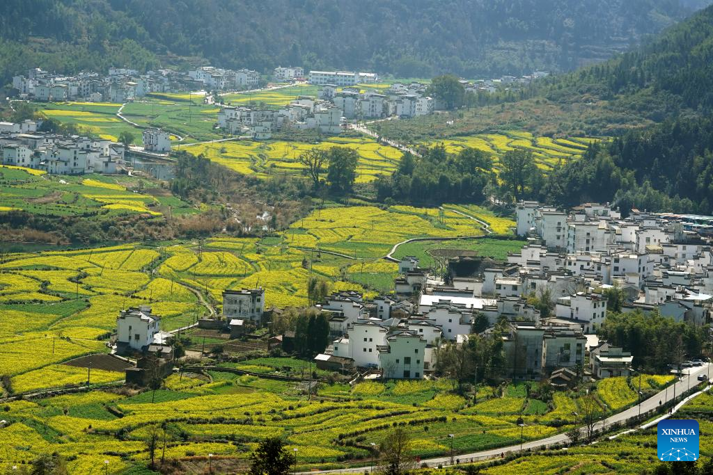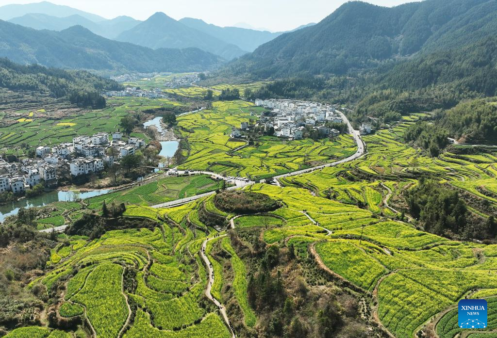 Blooming cole flowers are pictured in Yantian Village of Wuyuan County, east China's Jiangxi Province, March 20, 2025. (Xinhua/Wan Xiang)