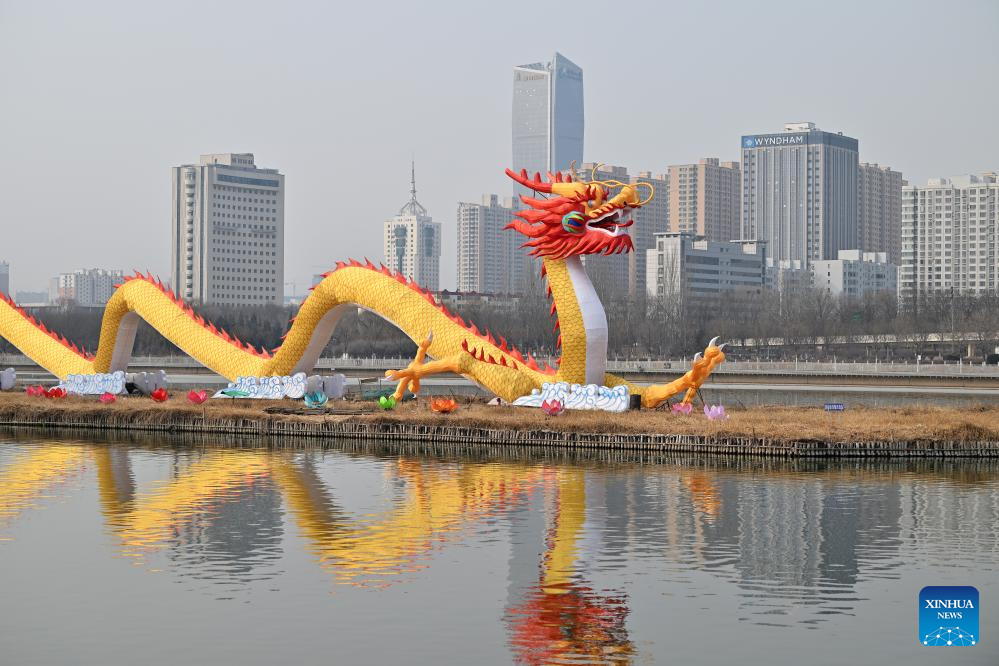 This photo taken on Feb. 21, 2025 shows a dragon-shape lantern in Taiyuan City, north China's Shanxi Province.