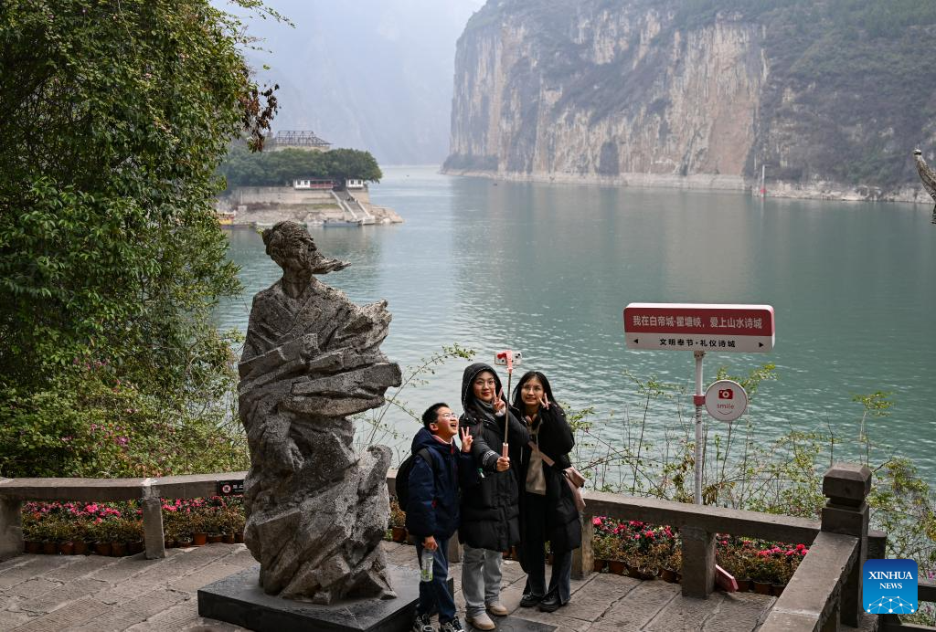 Tourists visit a scenic area in Fengjie County, southwest China's Chongqing Municipality, Dec. 19, 2024. (Xinhua/Wang Quanchao)
