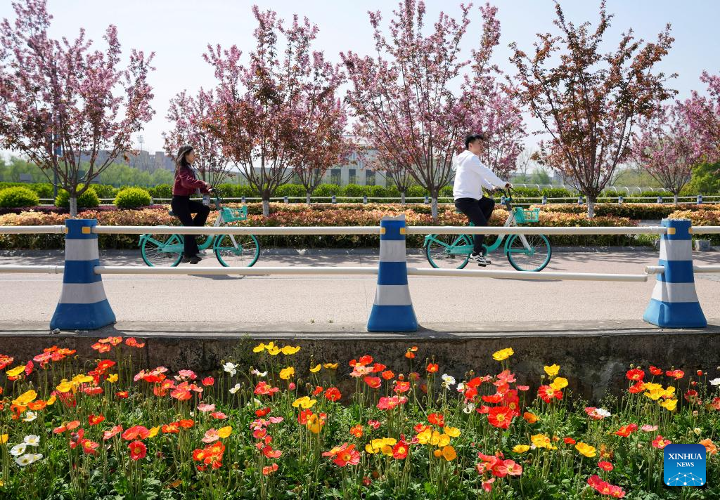 People cycle at the Zijingang campus of Zhejiang University in Hangzhou, capital of east China's Zhejiang Province, April 6, 2025. (Xinhua/Han Chuanhao)