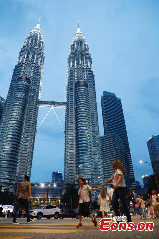 Scenery of the Petronas Twin Towers in Kuala Lumpur, Malaysia, April 13, 2025. (China News Service/Han Haidan)