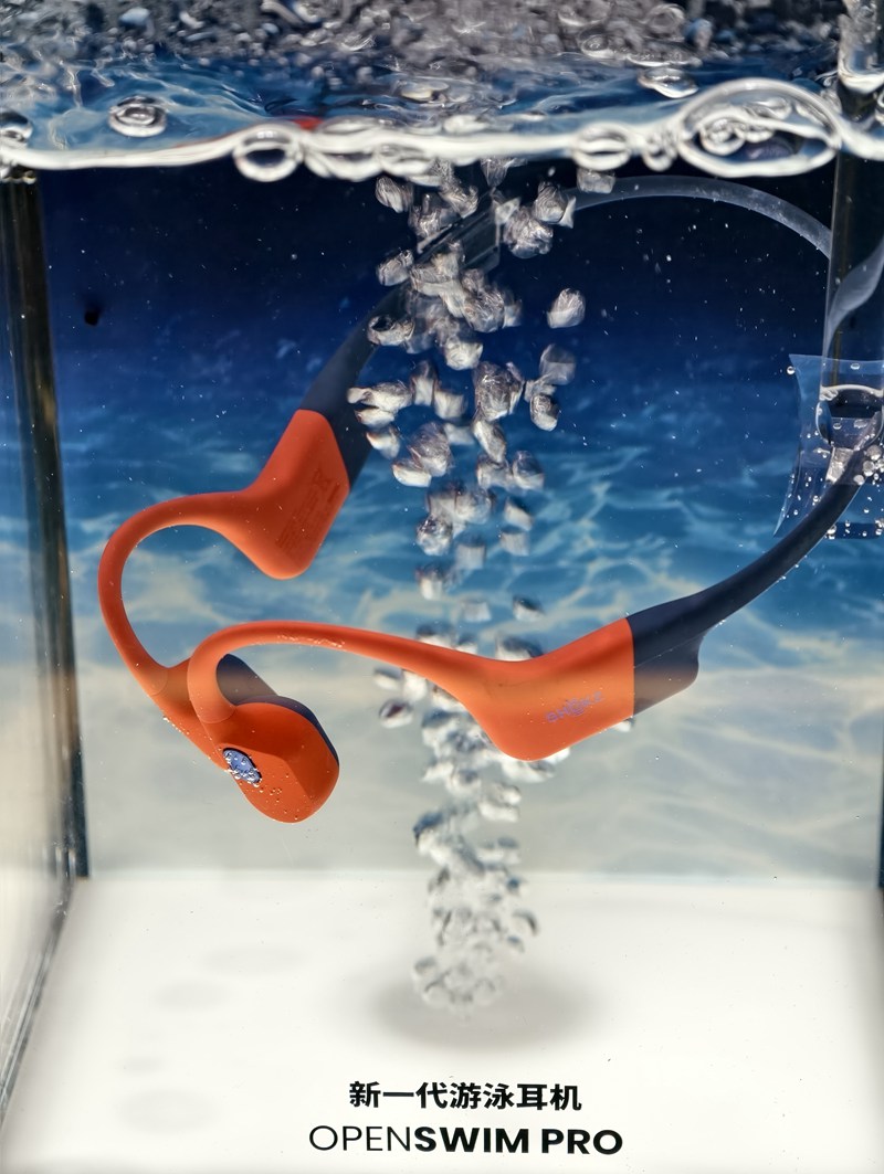 Photo shows a swimming headphone set on display at the ongoing fifth China International Consumer Products Expo in Haikou, south China's Hainan Province. (People's Daily Online/Fu Zemin)