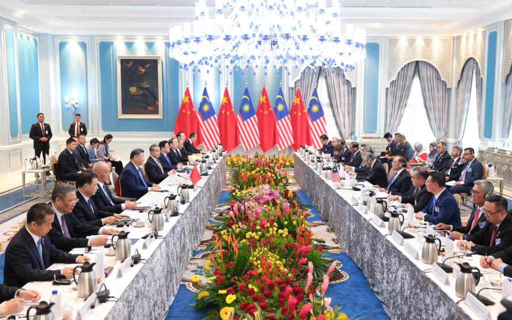 The two sides should upgrade traditional areas of cooperation and promote two-way investment, Xi said, adding that efforts should be made to advance rail-sea intermodal transport, enhance the "Two Countries, Twin Parks" program, and elevate Malaysia's key ports into pivotal hubs of the New International Land-Sea Trade Corridor.