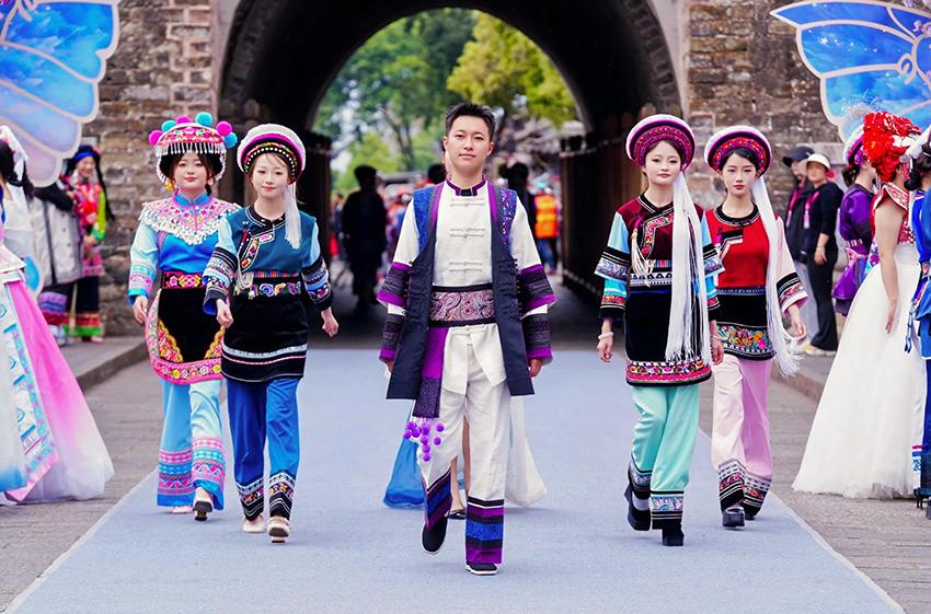 Photo shows a scene from an ethnic fashion show in Dali Bai Autonomous Prefecture, southwest China's Yunnan Province. (Photo courtesy of the new media association of Dali Bai Autonomous Prefecture)