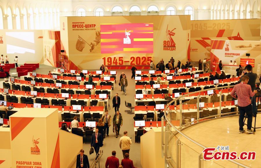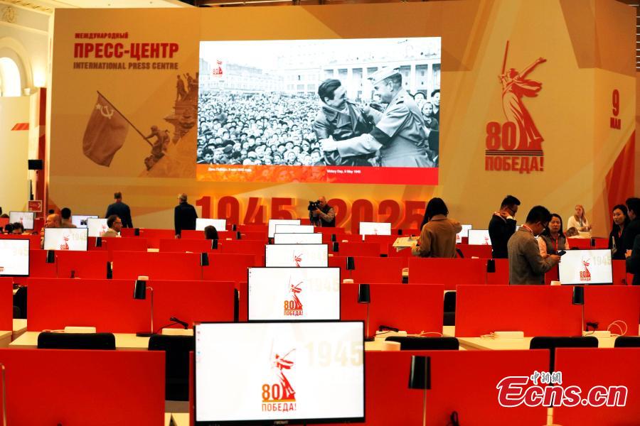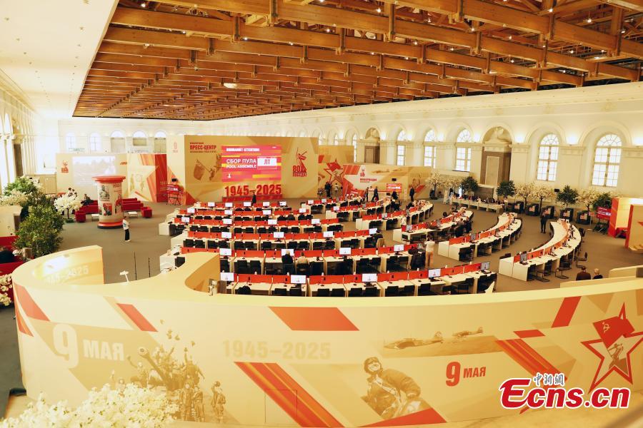 An interior view of the Press Center for the Victory Day military parade in Moscow, Russia, May 7, 2025. (China News Service/Tian Bing)