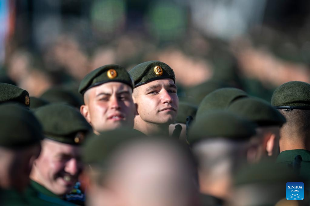 Soldiers prepare to attend a grand parade marking the 80th anniversary of the victory in the Soviet Union's Great Patriotic War in Moscow, Russia, May 9, 2025. (Xinhua/Lai Xiangdong)