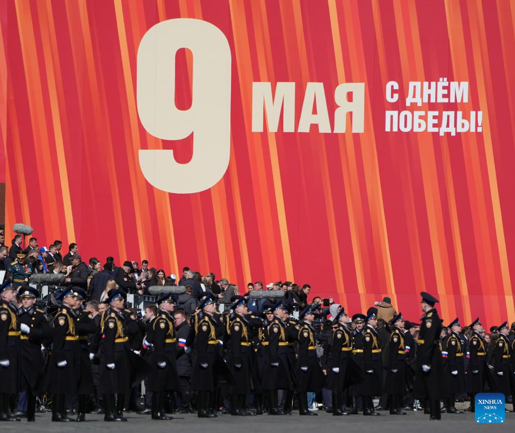Members of an honor guard prepare to attend a grand parade marking the 80th anniversary of the victory in the Soviet Union's Great Patriotic War in Moscow, Russia, May 9, 2025. (Xinhua/Lai Xiangdong)
