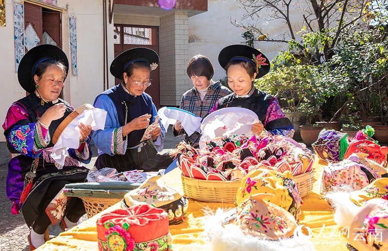 Women learn embroidery techniques at a heritage center in Diannan town, Heqing county, southwest China's Yunnan Province. (Photo/Jiang Ze)
