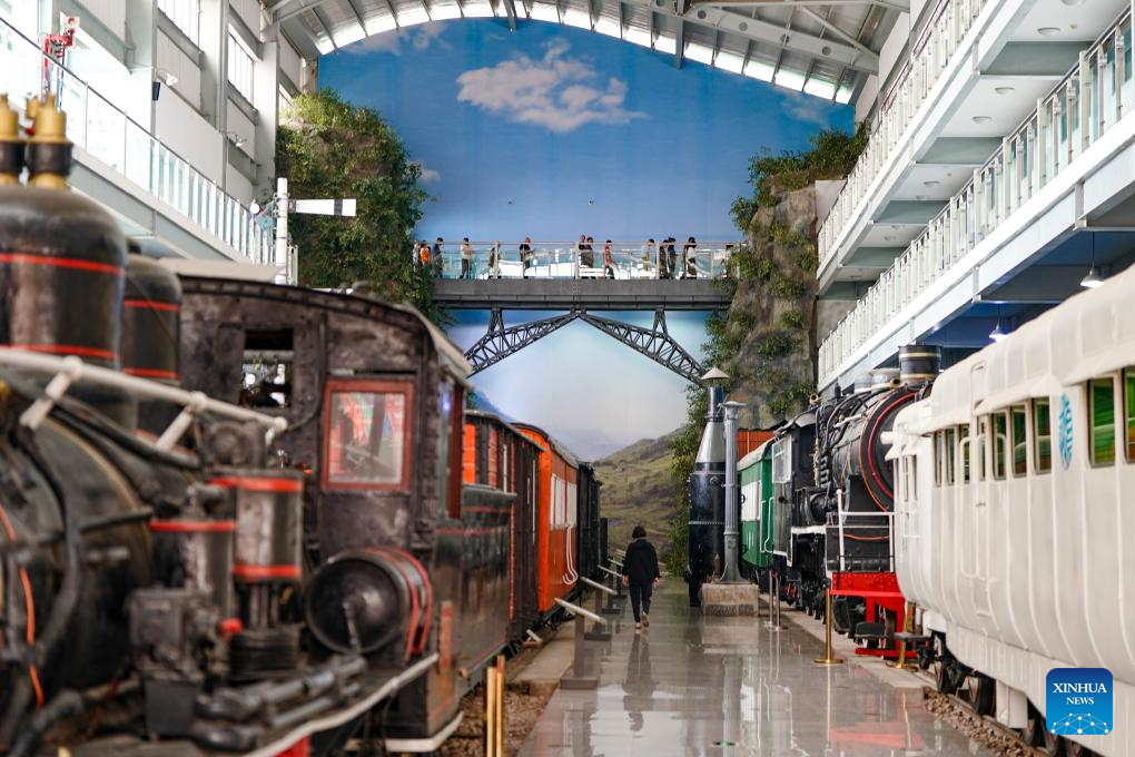 People visit Yunnan Railway Museum in Kunming, southwest China's Yunnan Province, May 14, 2025. Housed in Kunming North Railway Station, the Yunnan Railway Museum takes the century-long development history of Yunnan railway as the leading story line to narrate the frog-leaping evolution railway gauge standards from meter gauge to inch gauge, and standard gauge, as well as railway technologies from steam locomotives to high-speed rails. (Xinhua/Chen Xinbo)