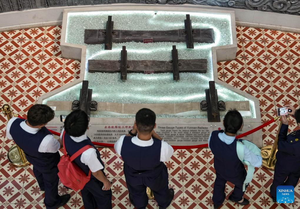 People visit Yunnan Railway Museum in Kunming, southwest China's Yunnan Province, May 16, 2025. Housed in Kunming North Railway Station, the Yunnan Railway Museum takes the century-long development history of Yunnan railway as the leading story line to narrate the frog-leaping evolution railway gauge standards from meter gauge to inch gauge, and standard gauge, as well as railway technologies from steam locomotives to high-speed rails. (Xinhua/Chen Xinbo)
