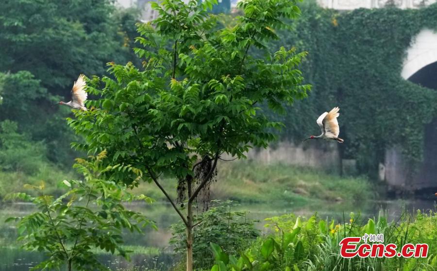 Crested ibises are released into the wild at Muchuan County, southwest China's Sichuan Province, May 22, 2025. (China News Service/An Yuan)