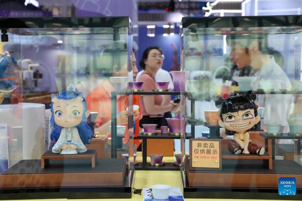 This photo taken on May 22, 2025 shows toys themed on the hit animated film "Ne Zha 2" at the 21st China (Shenzhen) International Cultural Industries Fair in Shenzhen, south China's Guangdong Province. (Xinhua/Liang Xu)